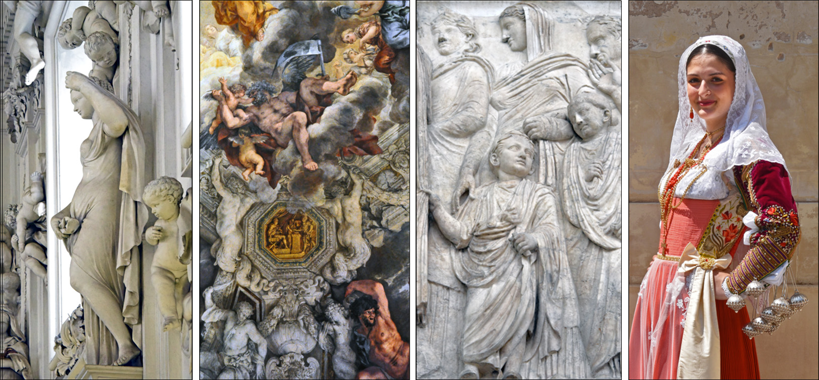 Travel in Italy during the month of May to Sicily, Sardinia, and Rome offered a rich array of subjects to photograph: ancient ruins, weathered and stained plaster walls, abundant street art in Palermo, Sicilian carts and puppets, prehistoric nuraghi, Norman and Sardinian Romanesque architecture, seductive Baroque ornament, and thousands of participants in traditional costume at the annual Cavalcata Sarda in northern Sardinia. New photography of these and other subjects may be seen in the Culture galleries Sicily, Sardinia, and Malta and The Stones of Rome.