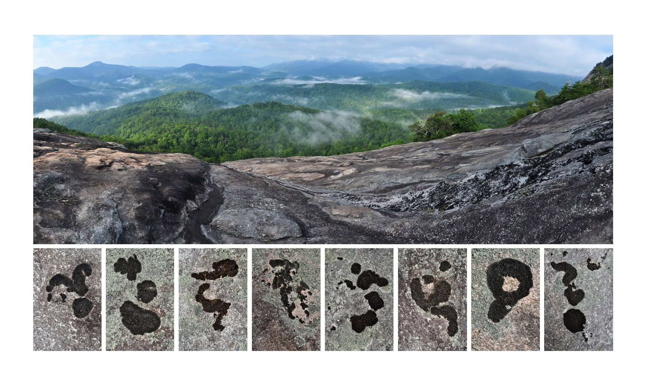 Long in the making, my book Looking Glass Rock: Grandeur and Abundance in the Southern Appalachian Mountains is now available from the publisher Clemson University Press as well as from Amazon and other booksellers. The book jacket provides this summary: “Beginning as a project to photograph a wild place through the seasons, this book developed over time into a deep study of the natural and human history of an outstanding feature of North Carolina’s Pisgah National Forest. Looking Glass Rock is a pluton, a massive mound of granite defined by towering cliffs that attract elite climbers as well as casual hikers and sightseers. An extensive photographic archive of its natural phenomena forms the core of the book, supplemented by historic images and maps. An accompanying essay explores the botanical abundance and unique geology of Looking Glass Rock, as well as the various peoples — Cherokee Indians, hardscrabble Scots-Irish farmers, wealthy Biltmore estate owners, loggers, moonshiners, and Civilian Conservation Corpsmen — who once occupied the area and left traces of their former presence. This book offers a model for an exploration of a particular Appalachian landscape with a fulsome appreciation for both its wild beauty and its compelling human story.”
